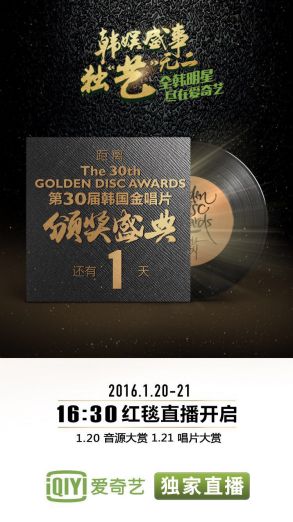 网友还自发在微博上刷开了话题#爱奇艺你够了#,一边盘点自家IDOL在去年年底到今年的各大颁奖礼上的精彩表现,一边期待明晚开幕的“金唱片”。随着“金唱片”进入倒计时,粉丝的热情也一路高涨,话题量直线上升。“金唱片”不仅拥有年度最强韩星阵容,而从20日到21日,延续两天的颁奖礼,也让粉丝激情澎湃,欲罢不能。 “金唱片”弥补遗憾BIGBANG、 f(x)将全员出席 “金唱片”是韩国权威性最高的传统颁奖典礼之一,由韩国唱片协会主办,邀请资深音乐人担任评审,主要颁发给韩国音乐界卓有成就的音乐人。据了解,为了保证评选环节的公正性,评审员的所有身份证件一律对外公开,他们将综合音源、唱片销量、人气投票等数据,对入围明星进行综合考量。 历年的颁奖典礼也是群星璀璨,去年更是在中国北京举办。从最早风靡亚洲的神话、安七炫、东方神起、SuperJunior等韩国音乐界“大前辈”,到少女时代,再到4minute、T-ara等人气团体,都曾在“金唱片”上留下了自己的印记。 今年“金唱片”的嘉宾阵容也甚是强大,确定出席的有:BIGBANG、EXO、CNBLUE 、SUPERJUNIOR利特和圭贤、IKON、少女时代泰妍和徐贤、EXID、f(x)、Red Velet、BTOB、AOA、Apink、SHINee、防弹少年团、Zion.T、HyukOh、Beast、VIXX、SEVENTEEN、BTS、GFriend等群星云集。 对于各大奖项的热门候选,粉丝们毫不吝啬表达自己的内心,纷纷表白自己IDOL,希望其得奖。