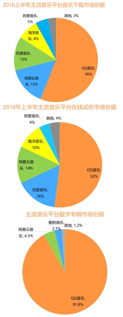 从数据来看,QQ音乐已成为了当前用户最青睐的音乐平台,并继续稳坐一线位置,而其他音乐平台也有不俗表现。如借助搜索优势,百度音乐就在试听市场份额中击败了其他平台;音乐资源仅次于QQ音乐的网易云音乐也在下载市场中来到了第二位置。