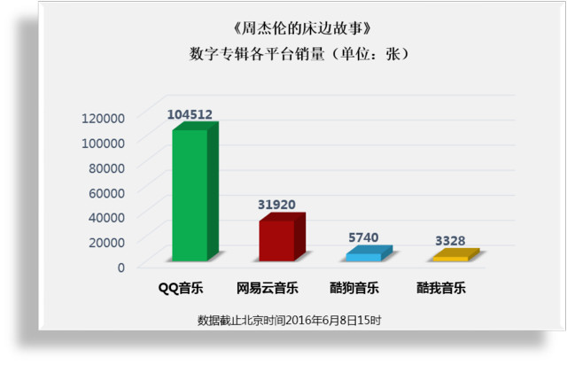 目前,网易云音乐、酷狗、虾米等主流音乐平台都开始了数字专辑的销售,从报告数据来看,用户量和市占率都较低的网易云音乐反而成为了数字专辑市场份额相对较高的平台,达到4.3%;酷狗音乐由于长期主打免费并着重于产品的工具属性,用户量虽然有一定优势,但在付费意识还有很大的提升空间,市场份额为2.7%。近期,数字专辑元老周杰伦也再度回归,以预售的形式推出《周杰伦的床边故事》,与报告调研结果一致,截至预售启动当天15:00,QQ音乐已经率先售出了104512张,网易云音乐售出31920张,酷狗音乐售出5740张。 |