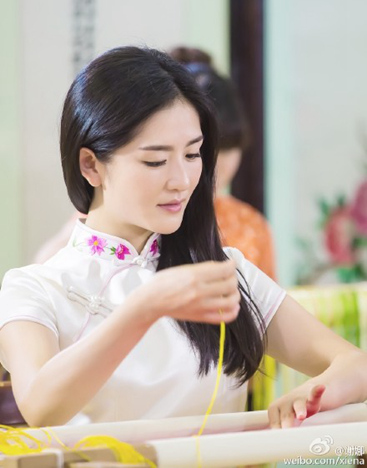 原标题:谢娜穿旗袍绣花侧颜静美 网友:打开方式不对(图)
