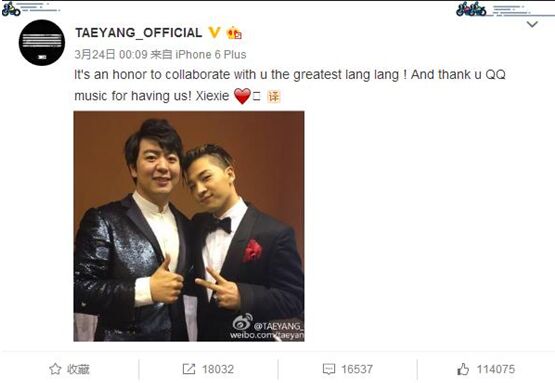 亚洲首席男团+国际钢琴王子,这场国际级的合作会碰撞出什么样的火花?在前不久2016QQ音乐巅峰盛典的舞台上,BIGBANG与郎朗合作了一首旋律性超强的《LOSER》,成为全场最亮点!而盛典当晚,BIGBANG也为“七年之约”特别加场,三曲连唱,粉丝直呼过瘾。