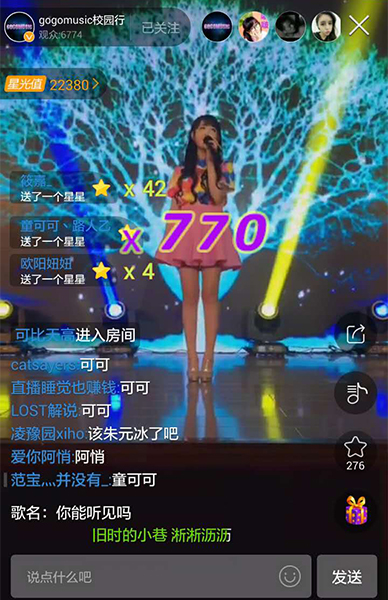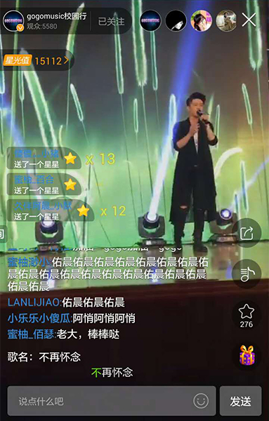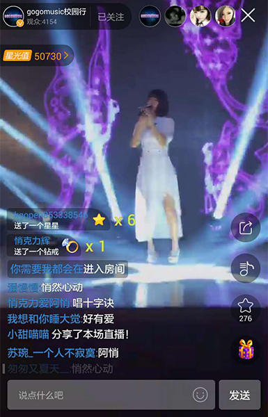好音乐走进校园,相信看了5月16日“GOGOMUSIC校园巡回歌会”北京场的朋友们,一定还没有忘记当晚现场帅哭的李佑晨、cp即视感的朱元冰和宋孟君,以及童可可、阿悄、宝蓝、印子月这四位气质出众或优雅或搞怪的女神。昨晚18:30校园行哈尔滨场又如约而至,透过繁星直播的手机直播镜头,爱豆们不仅跟网友亲密互动,还现场嗨歌,线上网友极度活跃弹幕礼物刷屏,气氛几度达到高潮。 朱元冰自曝要“胸口碎大石” 宝蓝上镜美哭