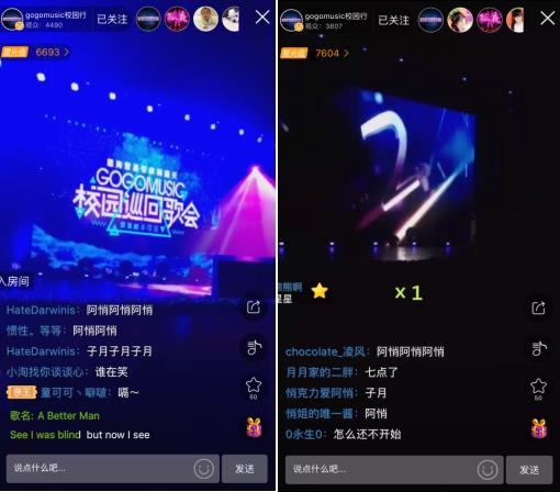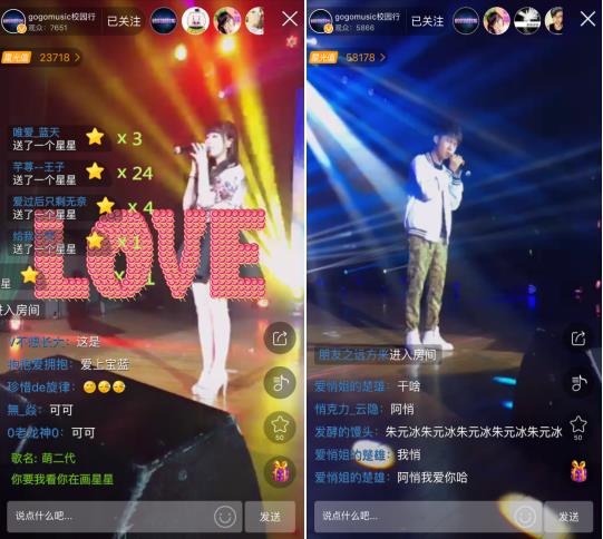 今天是酱油哥通过繁星直播APP带领线上粉丝参观演出现场,提前半个小时观众已坐满,现场人气比前四场有增无减。有粉丝抱了一大把鲜艳欲滴的鲜花说送给童可可,还有网友喊参观后台,酱油哥调侃称“后台很黑很危险”,粉丝称理解,随即以刷星光值来表达支持,更有网友称“手机都托累了”。酱油哥让大家猜猜谁第一个出场,有说子月的,有说朱朱的,有说阿悄的,还有说宝蓝的,更多网友送出对偶像的祝福,思念爱豆的心情之切令人感动! 女神男神联袂献唱 校园爱情表白