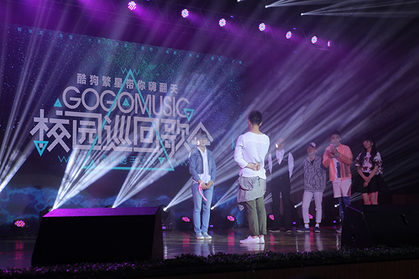 “酷狗繁星直播校园行”第五站于5月23日在青岛理工大学举办,在凉爽的初夏,90新生代人气歌手朱元冰、童可可、阿悄、印子月、宝蓝和宋孟君联袂登台,继北京、哈尔滨之后,再次为现场观众和繁星歌迷送上了精彩的歌曲演绎和暖心游戏互动。甜美可爱的童可可出场引全场尖叫,堪称当晚人气王! 粉丝为见爱豆“手机托到累”令人感动