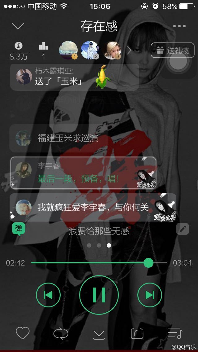 5月25日,李宇春全新概念专辑《野蛮生长》的首波EP《野》在QQ音乐独家正式发行。随着一条“吱”的弹幕在新歌《存在感》的弹幕页跳出,空降QQ音乐的李宇春瞬间令全体玉米陷入疯狂,在短短几分钟内,就收到数不过来的“情书”刷屏表白。而李宇春也大展撩拨技能、热情回应,让不少中“弹”的玉米大呼“好有爱”!