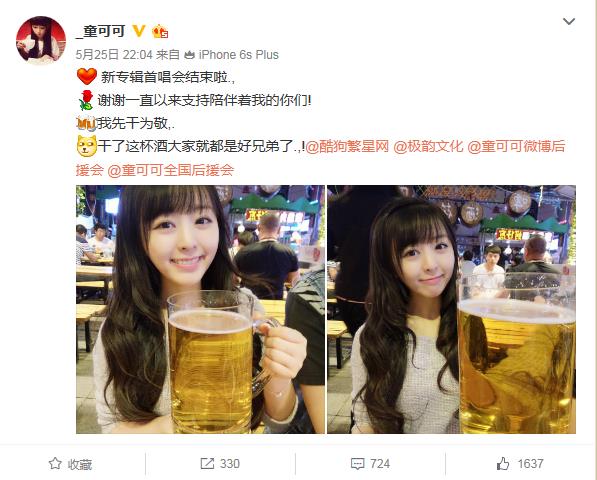 新专辑首唱会结束后,可可更新了自己的微博状态,感谢可乐一直以来的支持和陪伴,看得出可可相当满意这次直播。