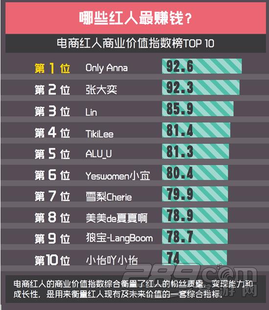 在报告中,雪梨的商业价值就排在第七位,不愧是王思聪后宫团最出名的网红,学历最高,也最会赚钱。这么强的商业头脑,不仅会增加用户的黏性,也是自己能常伴思聪身边的秘诀啊。