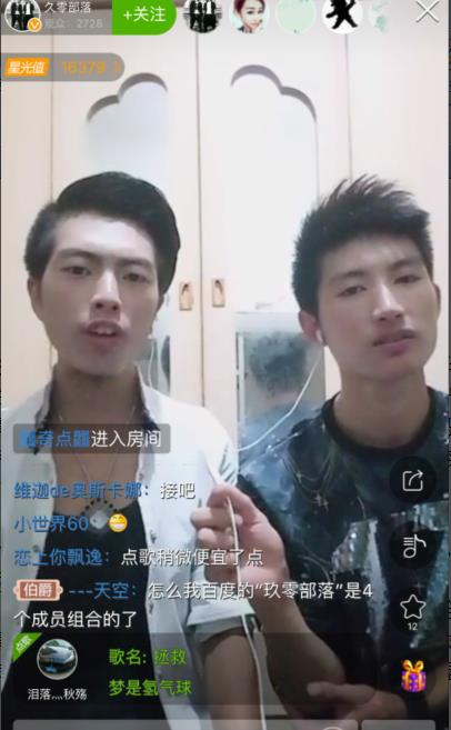他们不善言辞但内心狂热,他们心中有爱总能大声唱出来,他们朴实无华却技惊四座!他们就是来自四川小凉山的玖零部落组合!6月12日晚,队长阿sa和阿体代表玖零部落组合通过繁星直播app举办歌友会,当晚他们通过《旅行》《烫心》《逆战》《妈妈》《父亲》等十多首歌曲展现完美和声和音乐天赋,更与粉丝真情交流互动,简单却又真实的话语,和他们的歌声一样具有暖暖正能量!