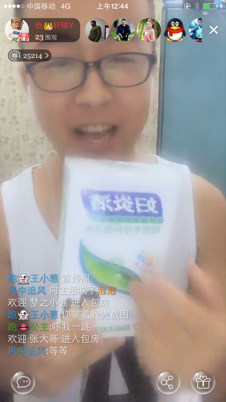 跑男团的团长“轩辕”真的是压寨直播里最逗逼的一个人。下图是“轩辕”在上周时直播的画面。拿着一瓶不可描述的液体(你懂的),在那里各种“骚”,引来众多人围观。观众都怂恿他喝,但他说要别人送“丘比特”才喝。