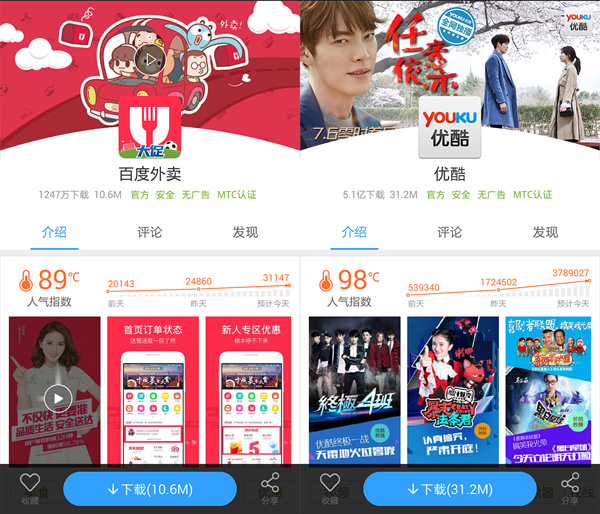 百度手机助手作为最大的手机应用分发平台,拥有超过六亿用户、过亿月活跃用户,在国内的应用市场中占额超过40%!所有的应用经过多方严格检测,为你的安全保驾护航,让隐私泄露无所遁形。如此巨大的人气使得百度手机助手早已成为中国互联网的一个符号,在提供应用下载的同时,还不定期有各种福利派送活动。 百度手机助手全新升级7.2.0版本,为你呈现全新详细页、全新视频频道以及全新的福利频道!随时关注中国新声音?就快来下载百度手机助手吧! |