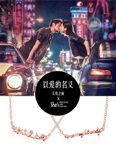 什么才是对的人?对的时候遇到的人,这个对的人遇到自己就好了。你愿意陪他/她亡命天涯,赌心赌命且绝不后悔!赌你爱上我,哪怕短暂的温暖之后依然是无尽的孤独。正是基于如上的基调,电影有约与She’s联手为《天亮之前》精心打造了创意剧情衍生品“赌你爱上我/one night only”中英文系列精品项链。