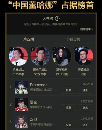 《中国新歌声》即将迎来盲选收官战,在上周五的第四期盲选中,7位学员纷纷用精湛的歌艺换来了导师们的“冲刺”,巧合的是,其中3位学员都不约而同的选择了周杰伦的歌曲作为参赛曲目,令现场变成“周杰伦致敬专场”。作为《中国新歌声》互联网独家收歌平台及音频独家合作伙伴,QQ音乐的乐评团、K歌翻唱大赛等“听、看、玩、唱”各种互动玩法随后也纷纷被“周董效应”刷屏,迎来“杰伦周”! 截至目前,“中国Rihanna”杨美娜、“追梦男孩”单良、“元气少年”李瑞轩分别在试听量、分享量、话题热度方面拿下第一,三人更强势占领QQ音乐第四期节目人气榜前三位,而《中国新歌声》在 QQ音乐的播放总量更已突破10亿大关!