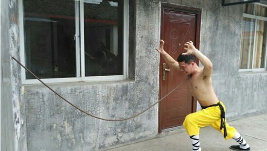身怀绝技 据赵锐介绍,他已经练了8年的硬气功,除了其他比较常见的绝技,还有两项达到身体极限的绝技:电钻钻人体和钢枪刺身碎大石。 如今赵锐在家乡已经小有名气,凭借其扎实的功底,精湛的武艺,被江湖人称 “少林铁罗汉”。 (危险动作,请勿模仿) |