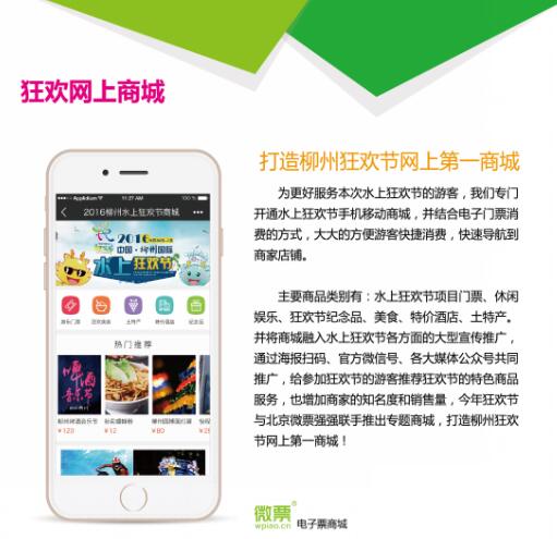 9月5日下午,2016中国柳州国际水上狂欢节新闻发布暨招商推介会在柳州举行,柳州市领导、企业嘉宾、媒体代表等出席本次新闻发布暨招商推介会。北京微票电子商务有限公司在本次招商推介会上,成功签约,与柳州政府建立水上狂欢节电子票商城合作,并成为水上狂欢节系列项目票务总代理,是2016中国柳州水上狂欢节战略合作商。