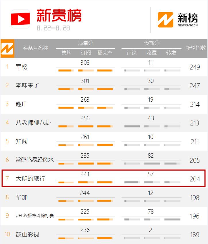 像大明这样短时间内即在头条号走红的新人还有很多,由两位背包客制作的“背包去环游”更为典型,逛商场,住酒店,泡温泉……“背包去环游”头条号上记录的几乎都是旅行里的小事,但却从未经历所谓的“启动期”,视频一推出播放量便稳定在 6 位数。 “野心”,这个已经多次登上头条视频榜老牌榜的旅游头条号,专注于探索南美丛林的秘密。他们发布的第一条视频,即收获了 33 万的播放量,堪称帐号冷启动典范。 查看新榜头条视频榜单,我们会发现有很多刚一开通头条号即收获了爆款的短视频作者,相比于过去难有出头日的“草根视频作者”,他们无疑是幸运的。 那么,相较于传统网站,今日头条能给新人迅速生长机会的原因是什么? 答案是文章开头提到的机器推荐机制。传统视频网站,视频的流量往往取决于其出现的位置,而网站为了保证总体流量的最大化,必须给予最有号召力、知名度最高的 IP 内容显要位置。因为新人创作的内容能否受到欢迎通常是个未知数,自然很难获得太多展示机会。 机器推荐则不同,依托用户欢迎度的扩大推荐机制让新人有机会只凭借内容(而不是履历)脱颖而出。某条视频用户反馈好,则继续推荐给更多用户,反之则减少推荐。因此,新人发布的第一条视频,和“一条”发布的第1000条视频,成为爆款的几率可能是非常接近的。 综上,对于在市场上努力寻求流量突破的短视频新人来说,头条号或许真的会是一个好的选择。 |