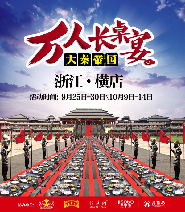 9、10月份一直是横店影视城的感恩季,而横店影视城秦王宫也在此之际为感恩长者准备了“大秦帝国——万人宫廷长桌宴”,此后还有任贤齐宫廷演唱会、2016横店影视节、明星高尔夫配对赛等众多热门活动,贯穿整个2016年底。
