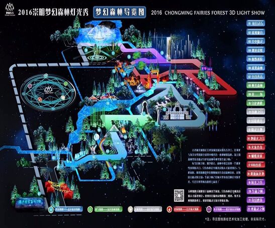 ▲美轮美奂的林中花海 虽然本次活动在夜晚,还是强烈建议你白天也去玩一次,真是太美了! 除了颜值高,崇明东平国家森林公园还是华东地区最大的人工森林。而且它的光污染是全上海最低的,保证了本次活动所有灯光艺术作品都能将其艺术效果发挥到极致。 而崇明岛是仅次于台湾岛、海南岛的中国第三大岛,有“长江门户”的美誉,毗邻上海市区,地理位置优越。既然要办顶级灯光秀,当然要选一个最合适的地方办。 在专家们的努力下,灯光技术与沉静的森林结合得天衣无缝,科技与自然,碰撞出了绚烂的火花。每株植物散发出点点光芒,在魔幻的灯光配衬下,诉说着远古的神话传说,充满古老的神秘感。 3.5公里沉浸式观演路线打破了多项国际艺术展的记录,游客置身其中,真实和梦境融为一体。整个路线中,设计师们充分利用每一个角落去展现超乎想象的科技特效:超大型水幕投影,全息投影,裸眼3D投影,气雾森林,红外线热感应,化学荧光试剂反应……这片梦幻森林堪称史诗级的灯光艺术杰作。