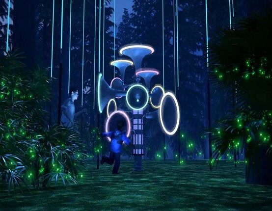 我们看电影都喜欢看IMAX的,就是因为屏幕大,看起来更有代入感、更震撼,灯光秀也是这个道理,投影越大越有代入感。这次《映画东方梦幻森林》里就有好几个超过40米的巨型投影装置,要知道直径40米都有半个足球场那么大了,不愧是打破了国际艺术展记录的活动。绝对是目前“浸入式的灯光体验”最强的灯光秀! 梦幻森林中还有各种各样的互动装置。