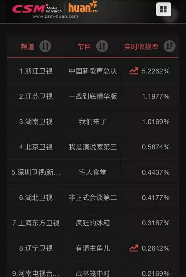 而当晚的鸟巢总决赛更是以平均3.59%左右的实时收视率摇摇领先,市占率稳在20%以上,最后的向洋、蒋敦豪两强对决环节收视率更是突破5.22%,市占率也突破30%!