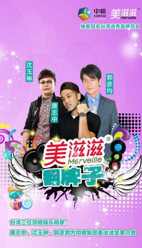 10月20日~23日,由中粮美滋滋坚果独家冠名的台湾美女主播选秀节目《翻牌子》火爆举办三场,斗鱼独家连播。新颖大胆的题材和优质的节目质量,使《翻牌子》在线直播成绩全线飘红,数据显示平均在线人数50万,总计150万人次,轻松斩获同时段直播第一的桂冠! 《翻牌子》这档由C&J娱乐制作的节目,在播出之前,就得到了众多资深观众的翘首期盼。该节目中,风情万种、才艺双绝的台湾妹子一一来到直播室,通过展示才艺和个性化表演的方式来赢取“评委”的青睐。 不过,和以往大家看过的所有直播不同,该档网络直播节目的评委不再是导师,而是观看直播的观众,哪个台湾软妹子能留下来成为节目主持,完全由观众来“翻牌”。真实、创新、趣味十足的节目形式,外加三位台湾明星唐志中、郭彦均、沈玉琳的重磅加盟,都让观众们大呼过瘾、纷纷参与其中,优秀的口碑让节目人气不断飙升,呈现台湾三场直播,场场飘红之势!