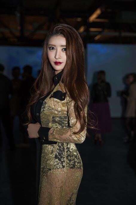朴梓善东方女性特有的庄重与典雅又很好的衬托了金色透视长裙的清丽与妩媚。金色的薄纱配上透视的浪漫,行云流水般的造诣展现出自然之美。而一丝一缕的风情,更是彰显了服装的灵动;朴梓善一颦一笑的优雅,凸显了本人的气韵与风范。
