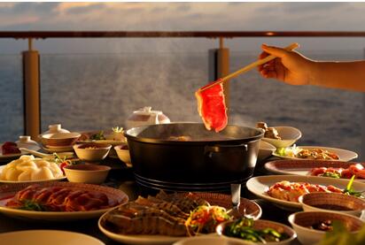 在邮轮上来一个海上火锅如何?肥牛滑鸡海鲜蔬菜的火锅料都备好了!在云顶梦号上,边享受海上涮火锅新奇乐趣,边享受一望无边的大海美景,简直兴奋得要忍不住唱歌了!如果想热热闹闹地和闺蜜好友们涮火锅,户外火锅位于8楼船尾,供应种类丰富的新鲜食材,包括优质肉类、各式海鲜和蔬菜,还搭配了精选饮品,只为大家的美食体验锦上添花。 细节、质感、舒适 —— 甜美睡梦之选 看了这么多,想好邀约爱人或至亲好友共度甜蜜时光或举行一次庆典了吗?「云顶梦号」是一个完美的选择。 选择露台客房,床上用品则是全球豪宅及奢华酒店指定使用的领先品牌Frette提供,茶包是风靡世界的顶级茶TWG TEA...你每天初醒打开窗帘,就可以享受露台上迎面吹拂的海风。蔚蓝大海与挚爱同在,还有什么比这个瞬间更刻骨铭心?