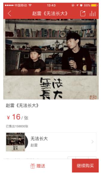 (网易云音乐《成都》评论截图) 2016年冬至,收录《成都》、《无法长大》、《鼓楼》等10首原创曲目在内的数字专辑《无法长大》在网易云音乐独家首发,4小时销售即超过5万张,创下了独立音乐数字专辑售卖速度的新纪录。这张专辑作品的词曲均由赵雷一手包办,虽然没有华丽的词藻,但旋律温婉,饱含生活的风景,像家里的旧电视、电磁炉的提示声等的惊喜出现,很容易就勾起了80后、90后的集体怀旧与思索,被不少乐迷誉为“最暖冬至礼物”。