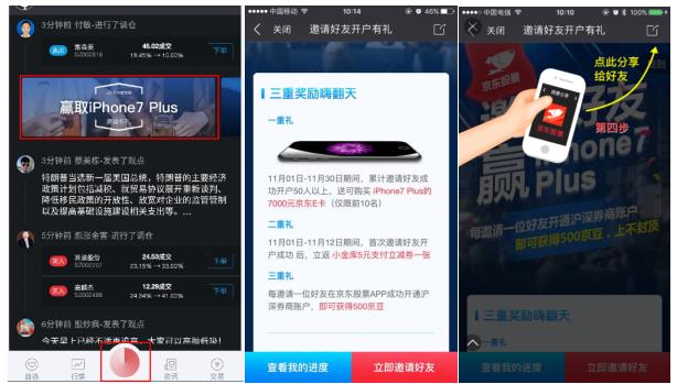 双十一刚过,京东股票APP“邀请好友开户有礼”返场活动震撼来袭,开启“送送送“的模式。据悉,“邀请好友开户有礼”活动将延续到12月底。期间有海量京豆相送,潮范儿十足的京东E卡等你拿。 作为此次活动的发起者,京东股票APP是京东金融推出的一站式股票投资服务平台。目前平台已吸引了众多股票投资”牛人”,股民可以零距离“围观”大牛持仓,学习他们身经百战的独家策略,让自己也成为炒股达人。 iPhone7手机等你来拿 作为第一重好礼,邀请人每邀请一位好友开通账户成功后,500京豆将在1-2个工作日内自动返到您的京东账户中,京豆可以叠加累计,多邀多得。而且,从获得当日起至次年年底,京豆可在京东商城抵扣人民币结算使用。此外,在11月1日-30日期间,邀请人完成邀请好友成功开户累计超过50人,率先完成任务前10名用户,可获得iPhone7手机奖励,以京东E卡的形式发放给个人。 ![]() 当然,京东股票APP福利大放送当然是要”雨露均沾“,被邀请人同样有礼相送。据了解,被邀请人只要在今年12月31日前通过京东股票APP选择任意券商开户,就可获得20元直充话费。 ![]() ![]() 具体操作方面,用户只需打开京东股票APP登录并把活动页面分享给朋友圈的好友,好友接受邀成功后,下载京东股票APP并申请开通沪深股票账户,即视为邀请好友开会成功。邀请与被邀请双方都将获得京东APP的好礼了。 京东股票APP教你炒股 京东股票APP是京东金融推出的一站式股票投资服务平台。凭借京东金融强大的大数据及技术能力,京东股票APP通过“智能多因子”、量化策略等服务帮助用户简化投资,真正做到场景化、人性化。 在页面设计、购买流程、场景呈现等方面进行了化繁为简的优化,从登录到开户交易,并不需要太多的步骤。同时,京东股票APP吸引了众多股票投资“牛人”在APP聚集,股民可以零距离“围观”大牛持仓,分享他们身经百战的独家策略。 据了解,目前京东股票app已经汇聚了众多具有丰富投资经验的行业牛人,在股票投研、行业、个股、板块等方面向投资者分享了有价值的投资心得。平台还设有牛人组合一键关注、牛人在线互动等栏目,传授炒股经验和方法,用户可以与牛人直接沟通,让初级用户轻轻松松从小白股民晋级为炒股能手。赶紧下载APP开户,见证自己升级进阶吧! |