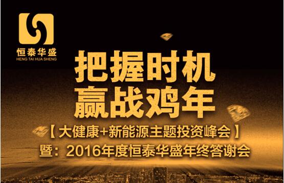 在2017新年之际,为了答谢广大客户的支持与厚爱,恒泰华盛将于1月15日在深圳四季酒店盛大举行“大健康+新能源主题投资峰会”暨2016年度恒泰华盛年终答谢会,专业人士对2017年宏观经济的展望、股权+并购投资的详细解读、新能源与大健康领域的智慧火花,也都将在此次峰会上一一呈现, 更多恒泰华盛相关资讯,以及此次峰会信息,请关注恒泰华盛官http://www.hths-capital.com或关注恒泰华盛微信公众号获取更多详情! |
