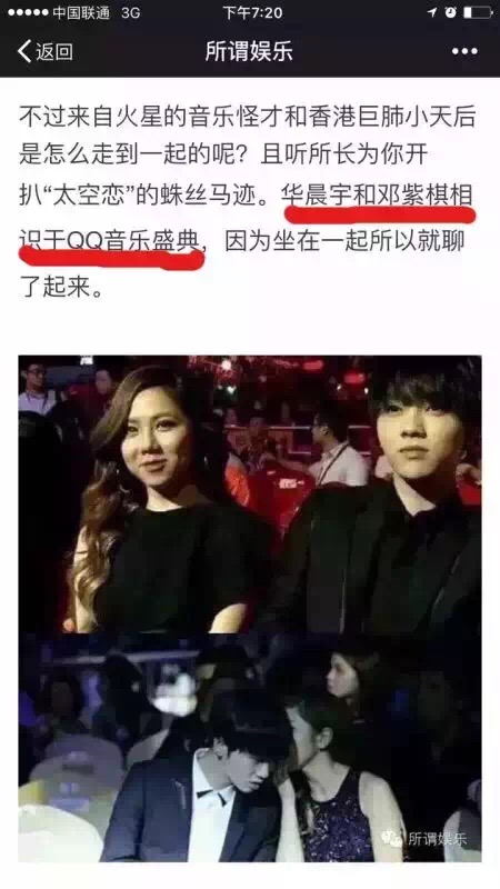 看来,所谓的乌龙真的就是真爱了。而且从邓紫棋和华晨宇两家的粉丝态度来看,大家对这段恋情还是持肯定态度的,相关的CP贴吧也活跃起来了,甚至贴吧头像用的也是两人在QQ音乐巅峰盛典初识的画面(突然觉得还挺暖的)。