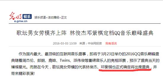 不过,就在这件事情看起来就要这样Happy Ending的时候,另一波猜测又来了。今天,邓紫棋参加2016QQ音乐巅峰盛典的消息得到确认。