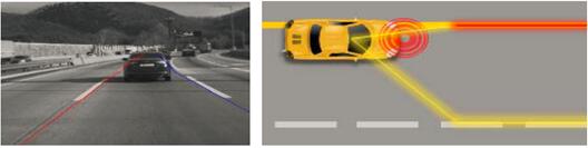 (2)前碰撞追尾预警(FCWS)。 前碰撞追尾预警系统持续监控前方车辆,可以在发生碰撞危险前2.71秒发出警报,提醒驾驶员及时刹车制动;