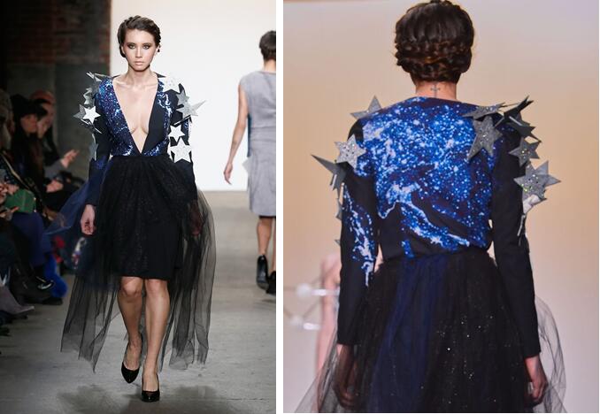 17岁的华裔新锐设计师Gloria Wen文倩贤 Gloria Wen在纽约时装周上的作品 2月15日,在纽约曼哈顿的炫目T台上,Gloria Wen这位小魔女似乎真有《哈利·波特》中的格兰芬多魔杖,用她独特而敏锐的目光、单纯而锋利的想象力,让人看到了新一代华裔设计师的才华与天赋。 “纽约时装周除了需要严谨的商业考量,也开始寻求一些生猛的、富于想象力的新生力量。”在看过Gloria Wen的作品秀之后,一位意大利的时装编辑如此袒露她的真切感受。 在Gloria Wen的作品中,人们总能猛烈地感受到一股清新的单纯感。完全没有商业的顾虑,小魔女Gloria Wen将未来感和浪漫的自然星空融合在不同的材质和线条表达,将一个小女孩心中的二次元体验活灵活现地呈现在商业味十足的曼哈顿T台上——似乎有点格格不入,但更多的是带来了单纯的新鲜气息。