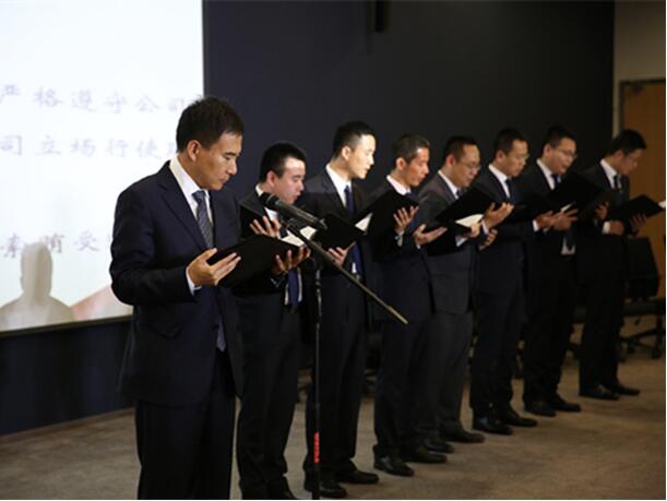 近日,德邦召开了以“凝聚共识、拥抱挑战”为主题的战略研讨会,会后举行了高管自律宣言大会。本次宣言是为了进一步推进德邦物流奉公自律文化,提升管理层的自律、进取意识。 宣言大会的现场,德邦全体高管面色严肃,董事长兼总裁崔维星带领各级高管一起庄严宣誓:“……我们要自觉践行公司文化,率足垂范;严格遵守公司制度,以身作则;时刻牢记职责,保证以公司立场行使职权……我们将坚决履行上述承诺,并接受公司审计和全体员工监督。”集体宣誓后,崔总及其直管人员依次还进行了个人宣誓。最后,全场与会人员在写有“廉洁自律、自我反思、践行文化、以身作则”这十六个大字的横幅上,签下了自己的名字。 在德邦物流看来,服务型企业应当尤为重视奉公自律的企业文化。作为一家经营快运、快递、仓储等多领域运输产品的企业,德邦每年服务的客户数量达千万级,要完成优质的服务,首先应建立在员工自律奉公的基础之上。因此,德邦一直主张最严格的人品红线,公司内部流传这样一句话,“人品出问题,一切都是多余的!”,足见对廉洁自律的重视。
