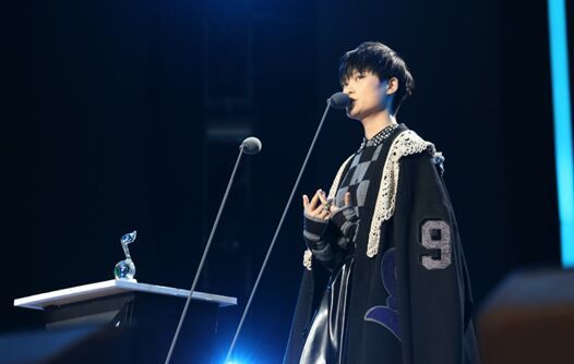 面带笑容站在颁奖礼舞台上,“年度最具影响力女歌手”,名至实归!