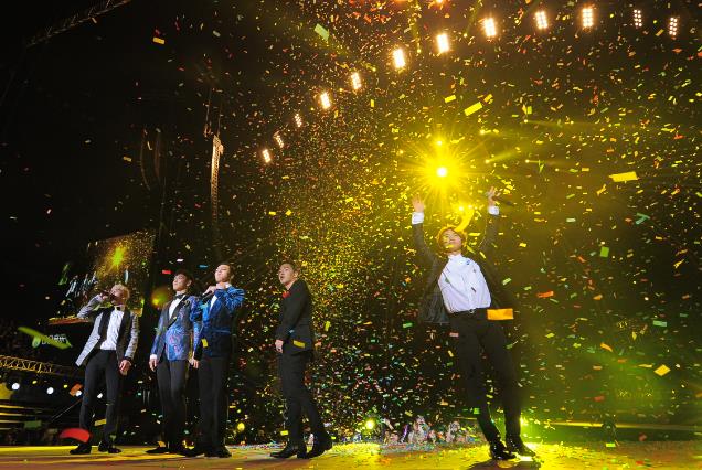 在昨天举行的盛典上,BIGBANG携同公司师弟团iKON空降深圳春茧,这也是YG旗下两大男团首次在内地颁奖典礼上亮相。BIGBANG不仅在国际明星云集的盛典上压轴演出,更凭借超高人气获得“最受欢迎海外组合”超级大奖、以超过四百万的QQ音乐数字专辑最高销量获得海外“年度畅销数字专辑”、热单《bang bang bang》也获得“年度最佳音乐录影带”将,人气成员权志龙(G-Dragon)更拿下了 “年度最具影响力男歌手”的个人奖项,可以说是本届盛典的最大赢家。领奖时,BIGBANG也大秀流利中文,与粉丝亲密互动!