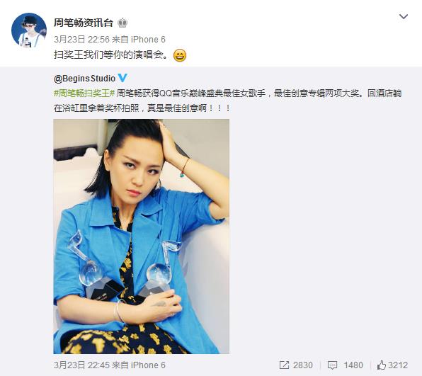 出道十年已经坐拥20个最佳女歌手、19个最佳专辑奖杯的周笔畅,也从QQ音乐巅峰盛典开启了2016年新一轮的扫奖,粉丝们纷纷表示“超期待!”