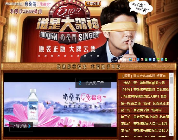 瓶装水市场经历了从概念营销到噱头营销再到如今浅尝娱乐营销红利的变化过程,在这其中能被大家记住并成功变现的案例才可以论为成功营销。 作为一个情怀和功能兼具的全新品牌。格桑泉幸福水,敏锐洞察了现代人对于触手可及幸福的渴求,将幸福之天然,幸福之纯净,幸福之安全,幸福之健康的诉求,通过“幸福水”的概念巧妙推出,同时也将5100诚意出品的产品优势进一步夯实了大众对于格桑泉幸福水的认知标签。现如今,格桑泉更是凭借娱乐营销手段率先突围,在中高端饮用水市场引领浪潮。随着水市场对于5100矿泉需求的不断扩大,我们在生活中、娱乐中也能看到“西藏好水”的身影。在近期大热的歌唱类综艺节目《谁是大歌神》中,格桑泉幸福水便以网台双首冠的身份出现在大众视野中。