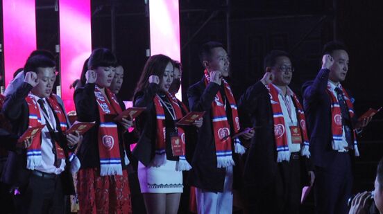 全国健康产业工作委员会胡广雪主任现场授予同心思纬“嵩晟富氢智能水机”入选“全国健康产品创新成果推广项目”的奖牌,充分肯定了同心思纬公司的发展实力和产品质量。 获奖代表 至高荣耀 来自同心思纬十四家子公司的一百余名获奖代表盛装出席,在全场近万人的欢呼声中,走过红地毯进入荣誉代表坐席,享受奥斯卡般的荣耀。