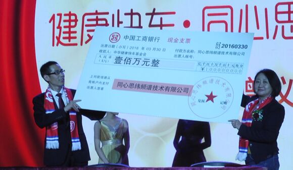 “健康快车”爱心捐资 在“大爱同心——责任篇”中,现场进行了“中华健康快车”捐资仪式,公司总裁王能强与中华健康快车基金会秘书长刘英霞现场签订了捐赠协议书,并将100万元捐资的大支票赠给刘秘书长,此善款将用于“中华健康快车基金会”治疗白内障患者的公益行动。同时,还将建设“健康快车·同心思纬眼科中心”救助更多的眼病患者。