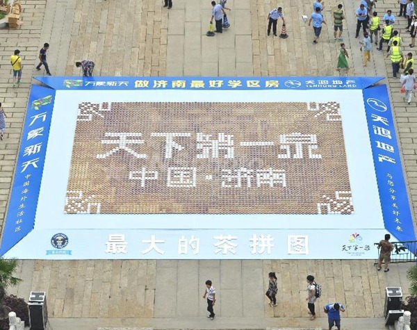 7 济南泉水大碗茶挑战吉尼斯世界纪录 创“最大的茶拼图”称号