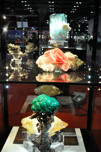 亮点六、异国风情珠宝 阵容豪华接轨国际 美丽的珠宝不分国籍,澳大利亚欧泊、斯里兰卡彩宝、韩式珠宝等异国风情特色珠宝的展出将本次展会推向了国际。据了解,本次展览国际及港澳台展商有近200家,367多个展位,占整个展位比例的17.4%。到场的游客还可以欣赏到两块世界之最宝石,吉尼斯世界上最大的一块黑欧泊原石—哈雷彗星(因同年哈雷彗星的回归而得名,总重2020CT,产自澳洲,出矿于六十年代初);世界第二大刻面海蓝宝石(产自巴西,以巴西最大的湖泊Patos Lagoon命名,切割于德国,总重1660CT,整体纯净无暇,颜色饱和度高,堪称世界收藏级别的宝石)。