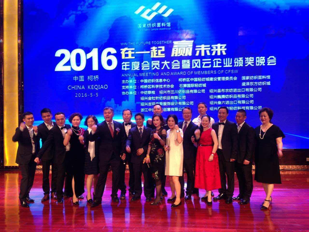 2016年5月5日,正是国家纺织面料馆成立7年之际,从2009年的艰辛创立,跟随全球跌宕起伏的经济大潮,国家纺织面料馆坚持探索、创新7年,终于在这个春夏交接之日,绽放出全新的花朵。 5月5日晚,集结中国纺织工业联合会领导、柯桥区中国轻纺城领导、来自全国的设计师、服装企业代表、纺织面料企业代表、专家学者、媒体记者,共约400余人,见证了国家纺织面料馆成立至今的首届会员大会暨风云企业颁奖晚会。本次以“在一起,赢未来”为主题的行业盛会,让业界看到中国纺织业发展的新思维、新模式、新创意。