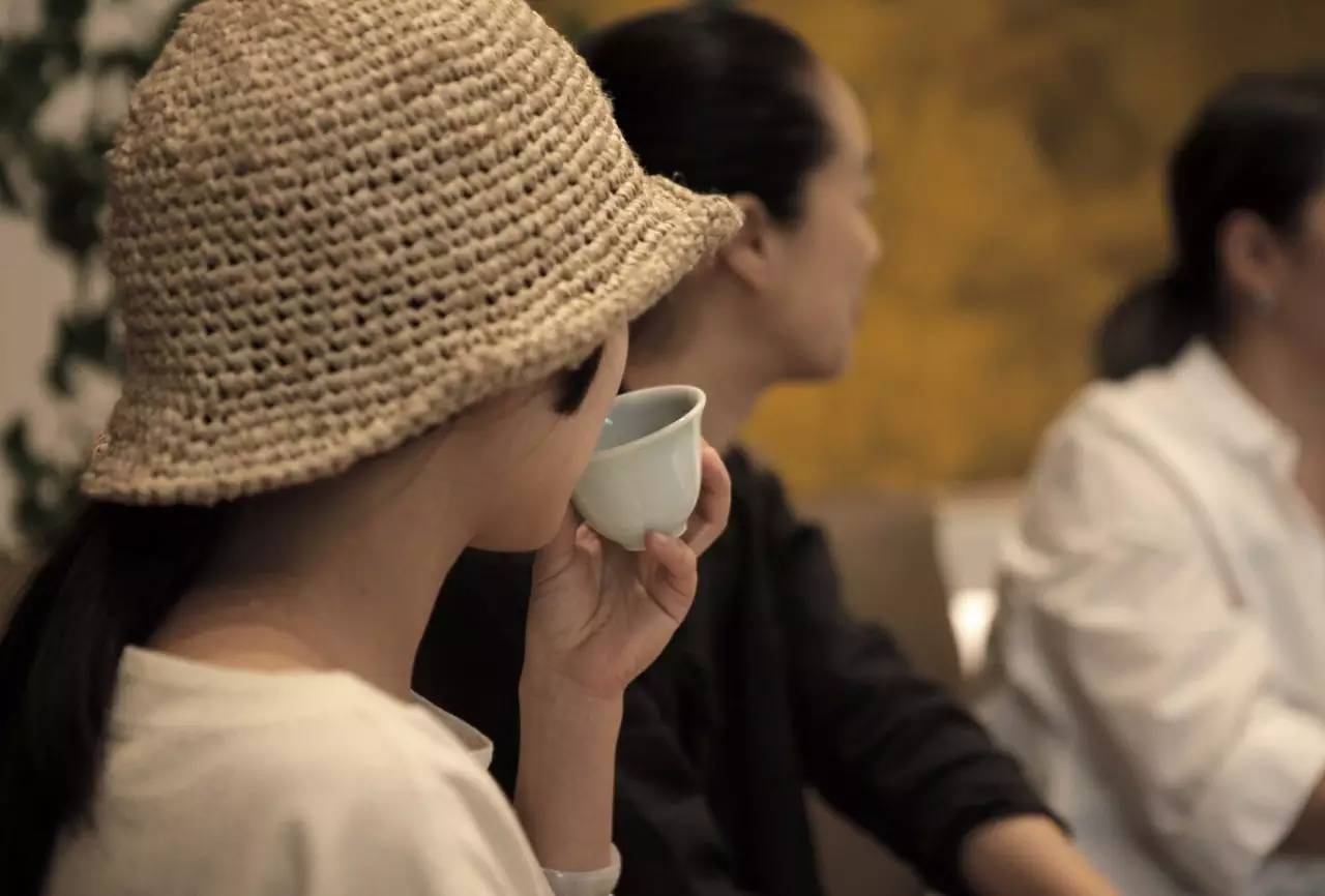 ▵ 迎宾茶席 ▵ 「立」茶席则设在空间之内的三角桌位,由马岭及胡斐两位老师亲自事茶,先奉上的是猎人野山银针冲泡,后猎人野大白,味道由浅及深,现场氛围亦徐徐推进,轻松愉快。