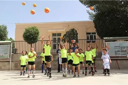 此次公益捐赠仪式举办地——依克萨克村小学,是一所建校于1885年的传奇学校,由巴吾东·穆萨巴耶夫、胡赛英·穆萨巴耶夫兄弟建立。1872年,穆萨巴耶夫兄弟开始进行教育改革,并在学校新开设了体育课。1874年,巴吾东·穆萨巴耶夫派人去欧洲引进足球运动,引进后首先在学校被列入必修课,受到学生们的喜爱,校外农民也喜欢上了足球,普及的速度非常快。1885年,依克萨克小学正式成立,还成立了专业少儿足球队。同时,巴吾东也组织了农民足球队。