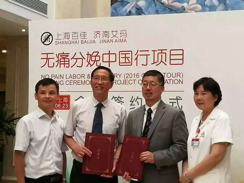 顺产还是剖宫产?这是让很多准妈妈纠结的问题,特别是“单独两孩”政策放开后,越来越多的准妈妈希望在第一胎时能选择顺产。但是,顺产时的那种疼痛往往让她们望而却步,那么,有什么方式能让妈妈在相对舒适的情况下,平平安安地自然分娩呢? 6月23日,“无痛分娩中国行”国际公益医疗活动走进上海百佳妇产医院。 签署合作协议 百佳将大力推广无痛分娩 当天,百佳妇婴医疗专业连锁机构上海百佳妇产医院、济南艾玛妇产医院与“无痛分娩中国行”国际公益医疗活动签署了项目合作协议,将展开长期的医疗合作,以形式多样的活动推动无痛分娩技术在上海及百佳连锁机构覆盖的广大地区得到有效开展,为进一步降低剖宫产率、提升产妇与胎儿的安全,作出切实的努力与贡献。 百佳妇婴医疗专业连锁机构济南艾玛妇产医院是国内第7家通过JCI认证的妇产专科医院,而上海百佳妇产医院从建院之初即按照JCI各项标准进行建设,并与2016年4月11日启动了JCI项目,全面导入该系统建设,而本次引入美国无痛分娩项目,即是遵循JCI“以客户为中心”的核心理念,为孕产妇提供舒适、安全的自然分娩。