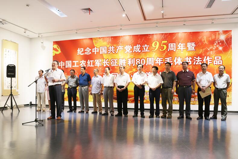最后,由乌海市政协原副主席、黄河文化经济促进会会长许惠和宣布“纪念中国共产党成立95周年、中国工农红军长征胜利80周年毛体书法作品六省巡回展乌海展”开幕!
