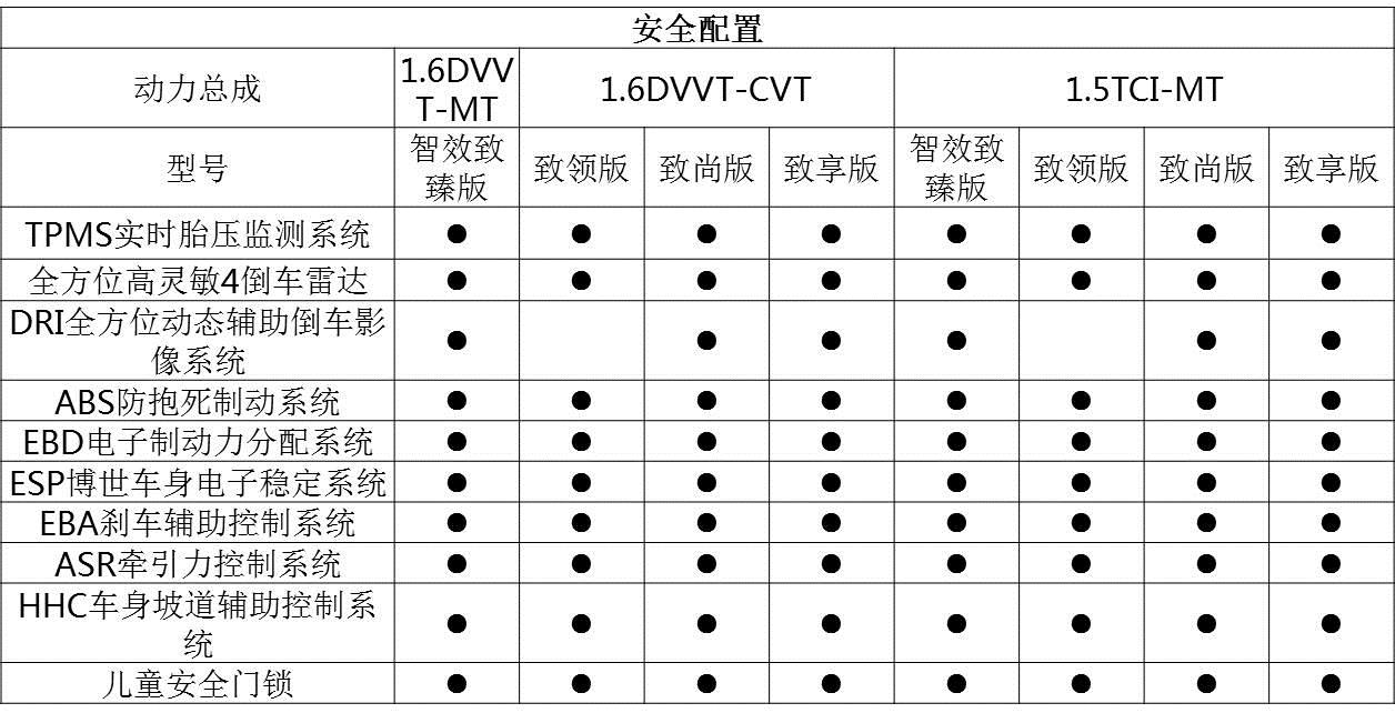 安全配置方面,新艾瑞泽7相当厚道,胎压监测、ESP、牵引力控制、HHC坡道辅助、倒车雷达等均为标配,在同级车中有很大的优势,能够提供非常全面的主被动安全保护。