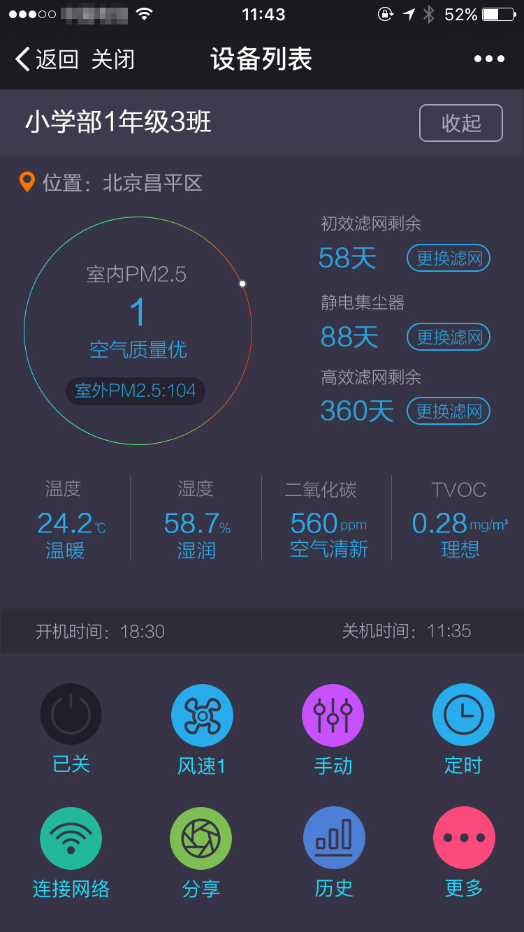 汇佳学校创始人、校长王志泽出身于教育世家,1985年,王志泽放弃了在当时北京商学院的工作,迈出了人生关键的一步—下海,在中关村做科技产业。1993年,国家颁布政策允许私人办学,王志泽马上汇集自己所有资源建立了北京第一所私立学校,“我当时没有规划,没想把它做成产业,就是一种爱好。上世纪90年代初,出国看到很多著名的学校,办得如此好,真是太让人羡慕了。” 创办汇佳学校出于王志泽对孩子们深深的关爱,本次花费近千万元为孩子们装备智能新风净化系统,同样出于对孩子们的责任和热爱。2015年的冬天,北京两次红色雾霾警报使王校长感到非常忧虑,教室、宿舍、体育馆里的空气怎么样?呆在室内就是安全的吗? 在与空气检测与智能控制领军企业北京海克智动科技开发有限公司的董事长郭天祥深入交流后,王校长知道室内的空气往往比室外更加糟糕:来自室外的污染空气未经净化,PM2.5与室外相当,加上二氧化碳、挥发有机物的污染,严重威胁着师生的健康,而智能新风净化系统把经净化的洁净空气引入室内,把脏空气排到室外,打造了一个洁净、清新的小宇宙,孩子们可以无忧无虑徜徉在知识的海洋。 为了保证广大师生能呼吸到新鲜的空气,汇佳学校选择了海克智动来为全校广大师生提供空气品质管理服务。海克智动在众多合作新风机厂家中选择了六星空气净化技术(湖南)有限公司,共同为汇佳学校打造一个空气清新、环境优美的“花园式”校园。 传统的新风机没有可视化的数据,没有智能控制,运行效果无从得知,经常滤网脏了还在运行,造成二次污染,操控不方便。海克智动智能新风解决方案在系列空气检测仪的基础上,对传统的新风机进行智能化改造,使新风机依据空气检测结果智能运行,同时提供中央监控、定时开关机、大屏显示、微信联动、独立控制任意机器、耗材实时监控等功能,并为用户提供整栋楼的“海克空气佳”服务。 海克智动B3工业空气质量监测仪提供PM2.5、温湿度、 CO2、TVOC等空气质量参数监测,检测结果可通过大屏电视、平板PAD、手机微信、电脑后台等直观展示;可接入学校信息发布系统实时发布,可在后台查看历史数据,分析新风运行效果,便于管理人员及时掌握空气质量情况,并提升学生、教职员工和家长满意度。
