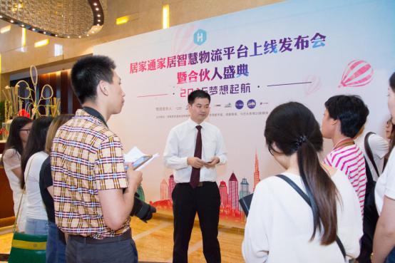 居家通CEO蒋继东接受媒体采访 火爆签约,合伙人签单到手软 “天罗地网”运营模式不仅解决了中小商家无法享受优质物流配装服务的痛点,还让物流商和安装师傅们看到了解决“运力、工作量不饱和”的解决希望。 到场商家代表优思科电子商务有限公司总经理余岱峰接受采访时表示,会选择用居家智享这个平台发货是因为他能提供全链路一站式物流服务,只要在电脑一点发货剩下就交给居家智享了,他会帮我找物流找师傅,特别省心、省力、省时还省钱。现在入住,平台还有让利活动。 龙江物流协会会长戴玉领在接受采访时表示,传统的接单模式存在着服务半径小,收费不规范,坐等客户上门,工作量运力不饱和等弊端,居家智享物流平台通过云端分配订单,不仅能实现收益可见,还能增强与客户之间的互动,让家居物流上的每个环节变得公平公正,方便快捷。